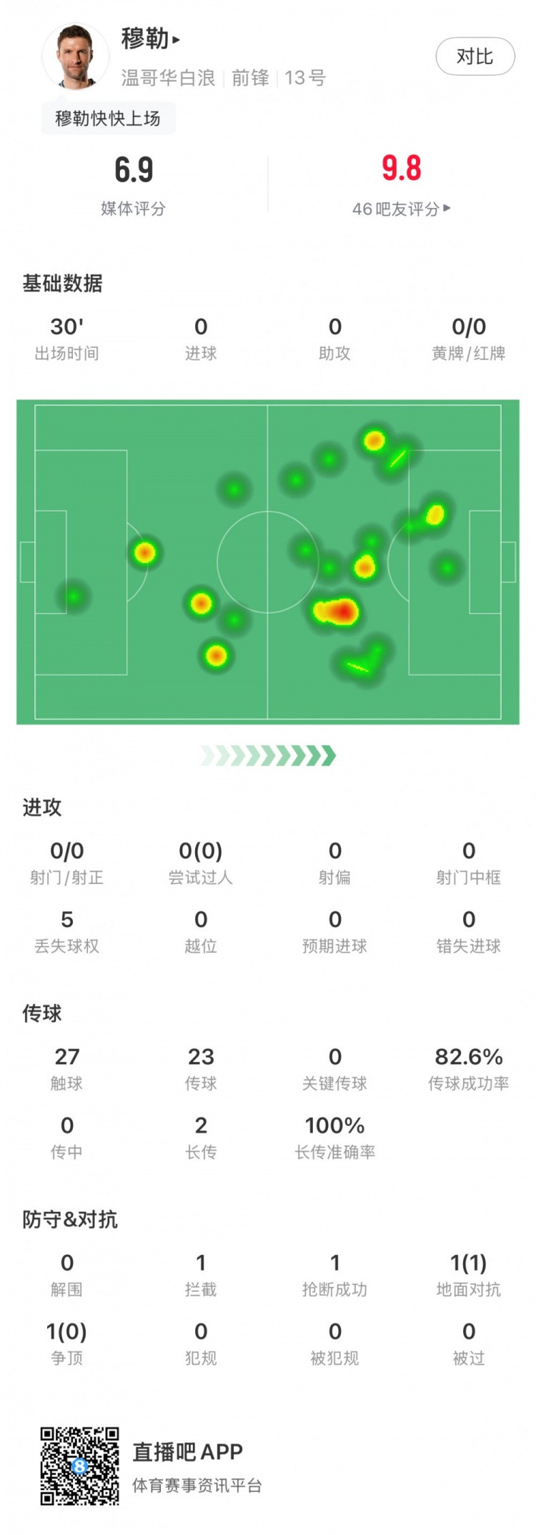 Dữ liệu đầu tay của Mueller: 30 phút xuất hiện, ghi điểm 1 đồng đội đã bị đánh mất và được xếp hạng 6,9 điểm