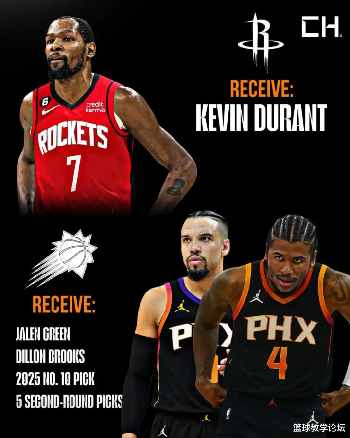 Mùa hè này, Rockets đã cử Jaylen Green, Dillon Brooks, lượt chọn số 10 ở vòng đầu tiên năm 2025 và 5 lượt chọn ở lượt thứ hai trong giao dịch 8 đổi 1 để mua Durant từ Suns! Mọi người đều có được thứ họ cần, đó là tình huống đôi bên cùng có lợi. Rockets có lời cuối cùng. KD luôn có thể đứng lên trong những khoảnh khắc sinh tử, còn Dillon mang đến cường độ phòng thủ cho Mặt trời.